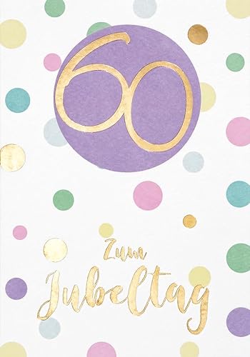 Perleberg födelsedagskort av hög kvalitet med 60 och prickar – ädelt kort till 60-årsdagen Födelsedag med kuvert – vackra födelsedagskort 11,6 x 16,6 cm – kort födelsedag för en lyckad överraskning