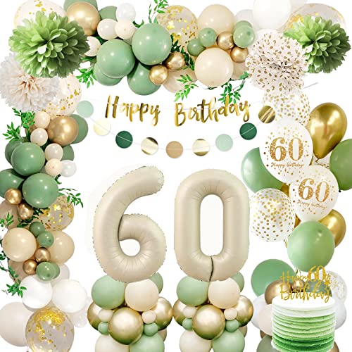 Gröna ballonger till 60-års födelsedag, födelsedagsdekoration, festdekoration på 60-årsdagen, banderoll med Grattis på födelsedagen, guldgröna dekorationer för födelsedagsfest på 60-årsdagen för män