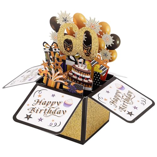 Pop-up-Kort för Grattis På 60-Årsdagen, Flerfärgade 3D-Kort På Födelsedagen med Kuvert Cool Födelsedagspop-Up-Låda Bästa 60-Årspresentidéerna för Män Kvinnor