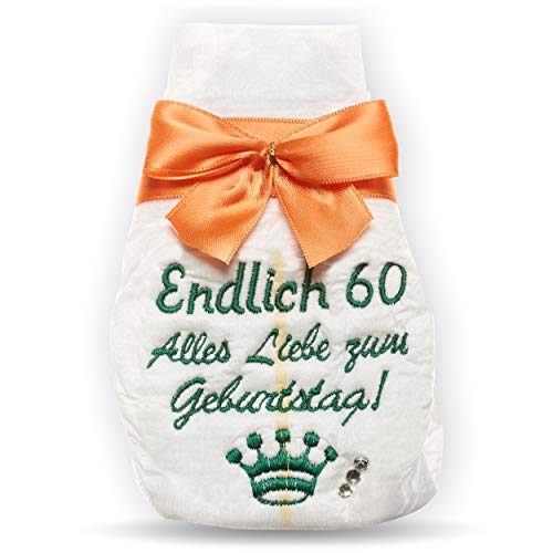 Tanjo rolig present till 60-årsdagen Födelsedag, broderad blöja, orange