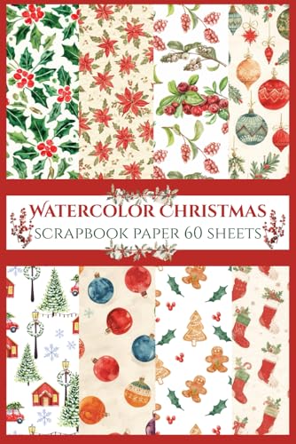 60 Sheets Watercolor Christmas Scrapbook Paper Pad (6x9 in): Premium Holiday Patterned Cardstock for DIY Crafts, Card Making, Journaling & Gift Wrapping – 15 Unique Xmas Designs (4 of Each)