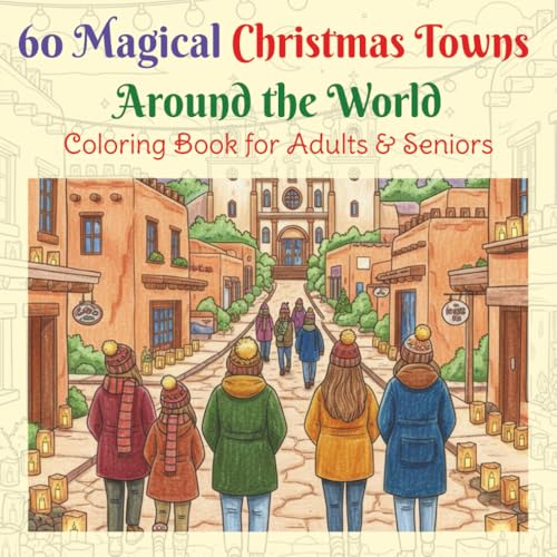 60 Magical Christmas Towns Around the World: A Festive Adult Coloring Book Featuring Beautiful Scenery, European Villages, Cozy Celebrations, and Winter Holiday Wonder