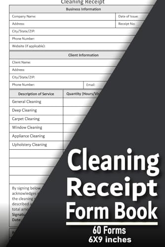 Cleaning Receipt Form Book: House Cleaning Service Receipt Forms,Essential Payment Record Keeper for Cleaners, Janitorial Services & Maid Companies | 6 x 9 Inches, 60 Forms