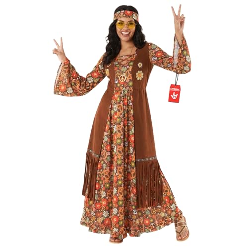 CHMMY Hippie kostym kvinnor set 60-tal 70-tal fin klänning hippie kläder kvinnor brun tofs väst hippie tillbehör pannband örhänge halsband solglasögon för 70-talet kläder karneval halloween, Brun, XXL