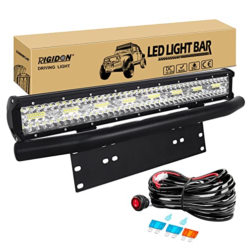 RIGIDON 8D 23 tum 480W Car Led Light Bar Med licensnummer Stötfångarskylt Monteringsfäste, 12V ledningsnät Kabelsats för terränglastbil SUV UTE ATV 4x4, Tri Row Driving Arbetslampa 6000K Vit