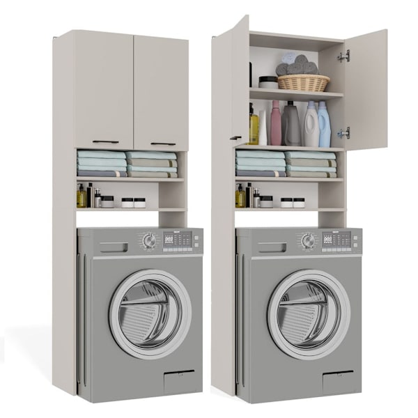 Badrumsskåp Pola DK med korta luckor och 4 hyllplan ovanför tvättmaskin | Kashmir | 64x180x30 cm