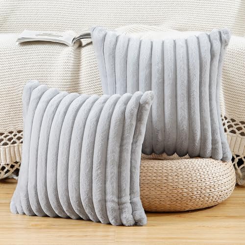 MADIZZ Set med 2 Mjuk plysch Kort Ull Sammet Dekorativa Kuddfodral 65x65 cm Ljusgrå Fluffig Randig Mjuk Dekorativ Kuddfodral för Soffa Sovrum Kuddskal
