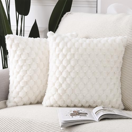 MADIZZ Set med 2 Mjuk plysch Kort Ull Sammet Dekorativa kuddfodral Lyxig stil Kuddfodral Kuddskal för soffa sovrum 65x65 cm VIT