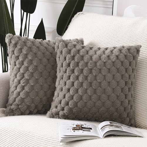 decorUhome Uppsättning av 2 fuskpälsöverdrag 65 x 65 cm, dekorativt mjukt plysch fluffigt sammetskuddöverdrag 65 x 65 cm, fyrkantig boho neutralt kuddfodral för soffa, brungrå