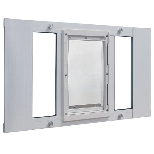 Ideal Pet Products Aluminium Skärp Fönster Husdjur Dörr, Justerbar för att passa Fönsterbredder från 68 cm till 81 cm, Medium 17,8 cm x 11-1/4 tum Klaffstorlek