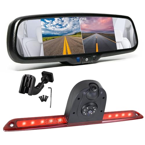 EnruigeOK dubbelobjektiv bromsljus-backkamera för Mercedes Sprinter W906 NCV3 W907 W910 VS30 VW Crafter Van med 17,4 cm (6,8 tum) skärm, 2 delade spegelmonitorkit (#12 hållarset)