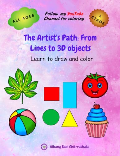 The Artist's Path: From lines to 3D objects: Learn to Draw and Color 70+ Lines, 2D & 3D Shapes, Flowers, Fruits, Toys, Animals, Birds, Desserts | ... Ages 3-6 8.5 x 11 Inch (21.59 x 27.94 cm)