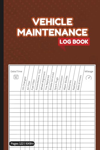Vehicle Maintenance Log Book: Mileage Tracker, Maintenance & Repair Record, Gas Log Book for Cars, Trucks, Motorcycles & Fleet Vehicles: Track Fuel ... Pages | 6x9 Inch | Compact Auto Record Keeper