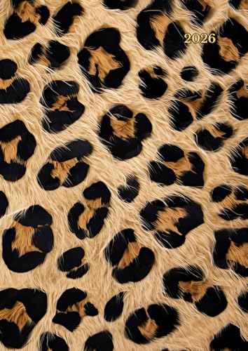 Agenda Semana Vista Horizontal a4: ( Leopardo ) en Español sin Anillas con Notas y Calendario Mensual 12 Meses - 7 Dias - Tapa Blanda Sin Espiral - Grande.