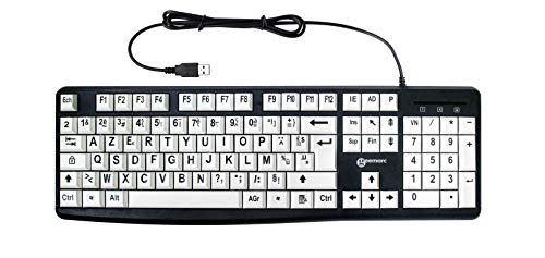 Geemarc trådbundet alfanumeriskt tangentbord med stora svarta tecken på stora vita tangenter - hög kontrast för synskadade personer - kompatibelt med Windows XP, Vista, 7, 8, 10 - AZERTY