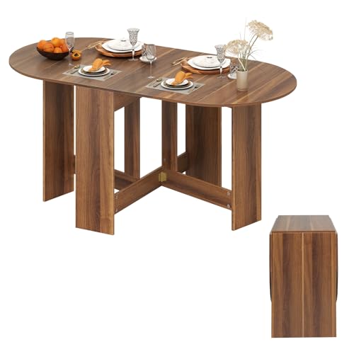 GIANTEX Hopfällbart Matbord Av Trä - Ovalt Köksbord För 4-7 Personer, Funktionellt Och Utrymmesbesparande, 163 x 80 x 75 cm