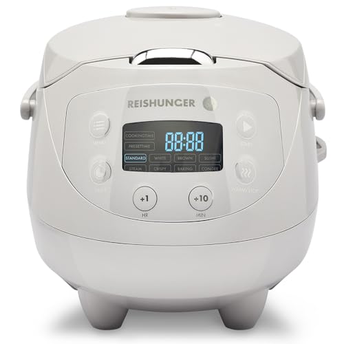 REISHUNGER Digital riskokare & ångkokare Grå med uppvärmningsfunktion, Timer & Premium inre behållare - multikokare inkl. rissked & mått, 12 program, 7-fasteknik, Upp till 8 personer