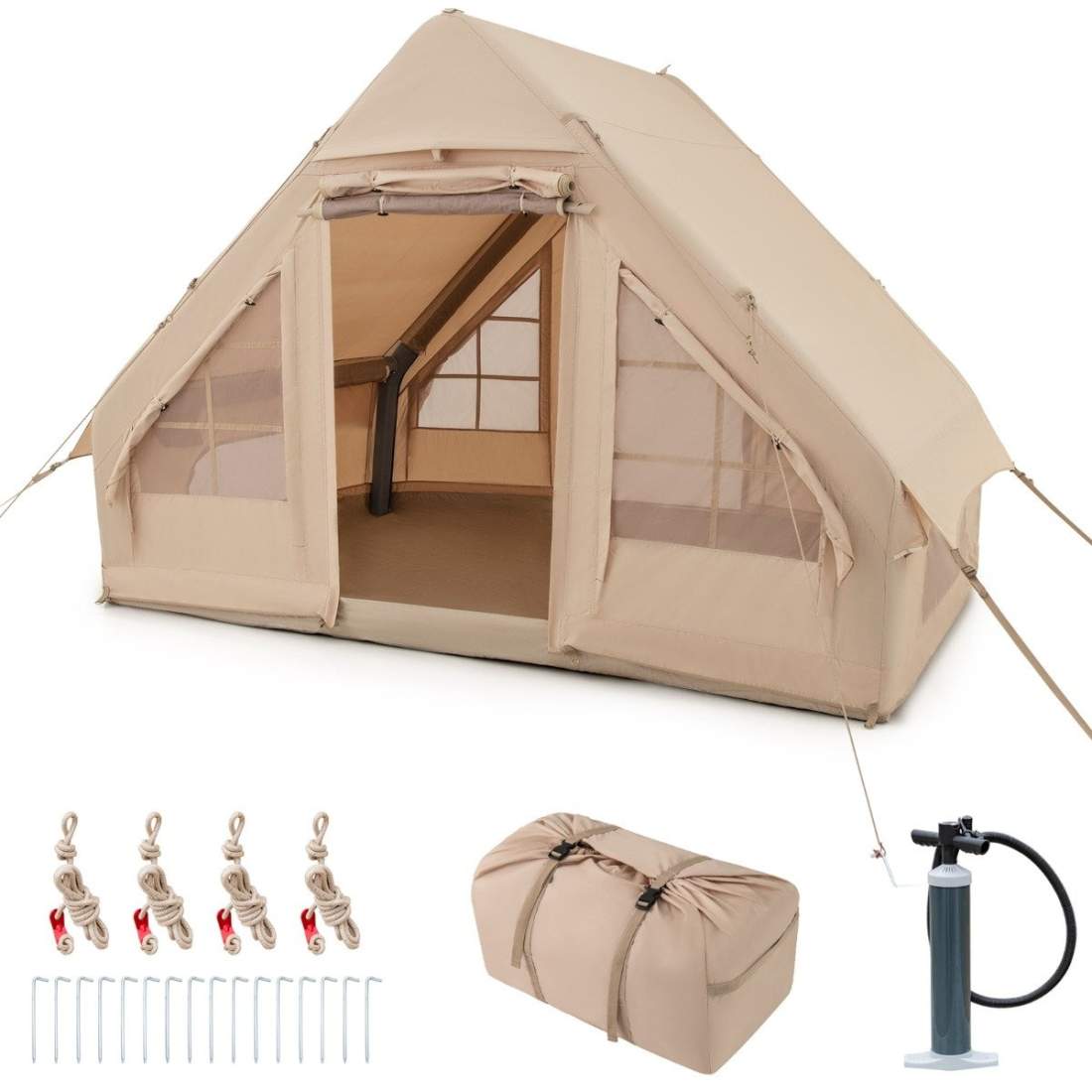 Uppblåsbart campingtält i bomull för 4-6 personer med pump & strandtält med 7 fönster