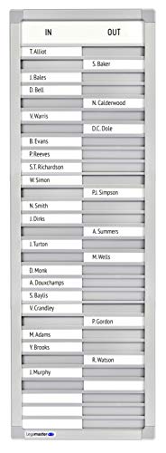 Legamaster 7-622300 in-and-outboard professionell, an-och frånvaroöversikt för 30 personer, 26 x 77 cm, eloxerad aluminium