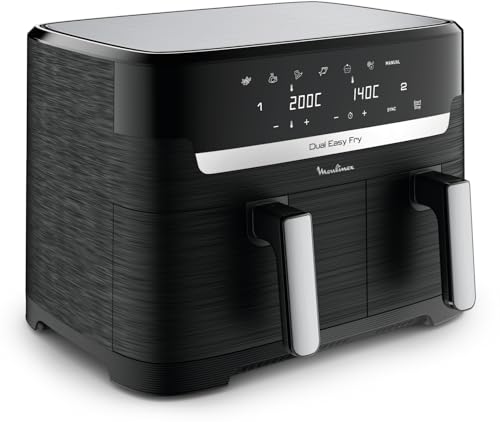 Moulinex Easy Fry Dual oljefri fritös, kapacitet 8,3 l, upp till 8 personer, 7 automatiska program, digital skärm, energibesparing, Moulinex app, air fryer EZ901820