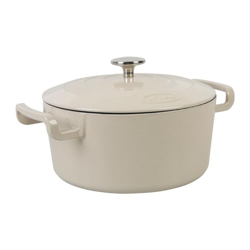 Sitram 715559 SITRABELLA COCOTTE rund i emaljerat gjutjärn 5 liter - beige exteriör och vit insida - alla värmekällor inklusive induktion, perfekt för 5–7 personer