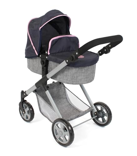 Bayer Chic 2000 2-i-1 dockvagn Mila – Melange grå-marinblå – höjdjusterbart handtag 39–72 cm – modern ram – dockor upp till 50 cm – 3–7 J.