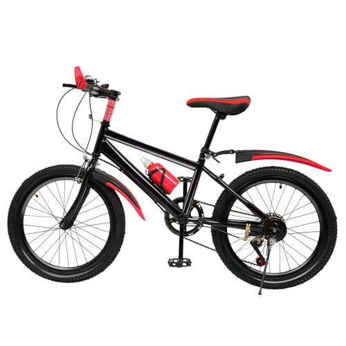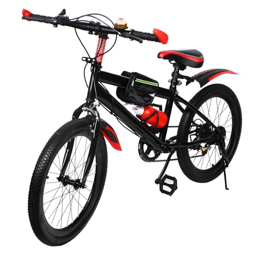 DHQCQL Mountainbike 20 tum, 7-växlad barncykel pojkar med vattenkopp hållare växellåda ringklocka full fjäder, pojkar flickor cykel lämplig för 6,7, 8, 9, 10, 11, 12, 13 barn (röd)