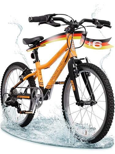 PROMETHEUS BICYCLES PRO Barncykel 20 tums pojkar flickor | Premium 20 tums cykel pojke aluminium superlätt från 6 år | 7-växlad krets från Microshift | svart matt orange