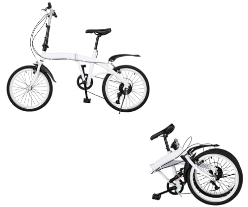 Fetcoi 20 tum vuxen vikbar cykel 7-växlad vikbar cykel camping stadscykel vit, vikbar cykel för män och kvinnor för stad och camping