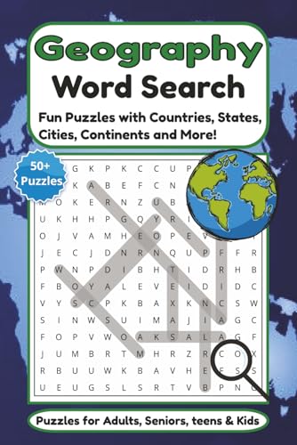 Geography Word Search Book: Word Searches with Easy to Read Print about Geography, Countries, Cities, Monuments, 7 Wonders, Continents, States | 6x9 ... Gift for Vacations, Holidays and Free Times