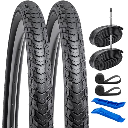 YUNSCM 2-ST 700C cykeldäck 700x35C 37-622 och 700C tunga cykelrör presta ventil med 2 fälgremsor kompatibla med 700x33C 700x34C 700x35C 700x36C 700x37C cykeldäck och rör (Y-1111 C 27)