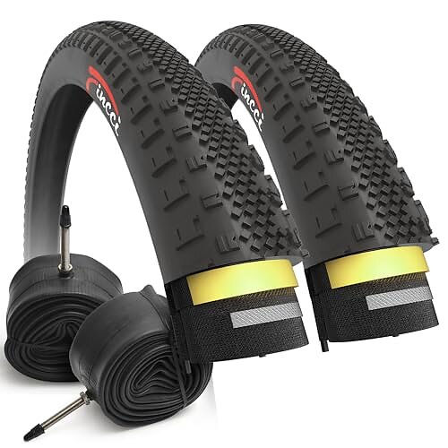 YunSCM 2-pack 28/700C racercykel däck 700x38C ETRTO 38-622 Plus 2-pack cykel innerslangar 700x35/43C AV48mm Schrader-ventil för 700x38C 40-622 cykeldäck och slangar