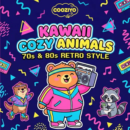 Kawaii Cozy Animals: 70s & 80s era Retro Style Nostalgic Scenes for Relaxation Coloring Book for Adults and Teens