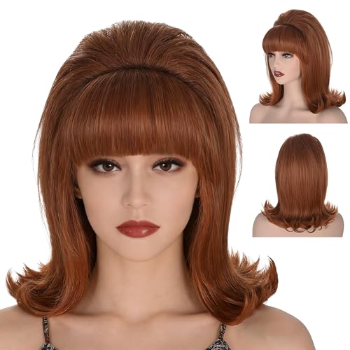 MORTICIA Kvinnor Flip Peruk 70s Pinup Pelucas 60s Retro Bihive Style Vintage Look Betty Rubble Peruk Halloween Kostym Kvinnor Peruk wtih Bang (Ingefära)