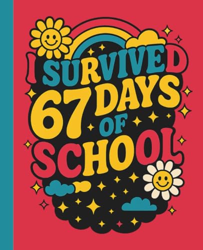 I Survived 67 Days of School Composition Notebook: A Funny Retro Style School Milestone Gift for Kids featuring a Groovy 70s Design with a Rainbow and Smiley Face Flowers - 110 Wide Ruled Pages