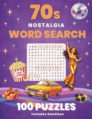Nostalgia 70s Word Search | 100 Puzzles | Includes Solutions: Large Print Puzzles for adults and seniors inspired by the style of the 1970s
