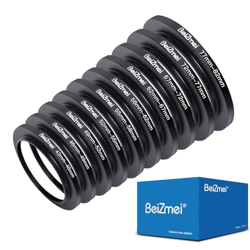 BeiZMei 10 stycken kameralins filterring, metallisk step-up-ring kompatibel med 43 mm kameraobjektiv, 43-46/46-49/49-52/52-55/55-58/58-62/62-67/67-72/72-77/77-82.CNC-produktion