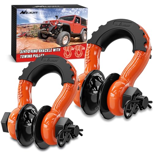 Nilight 3/4 tum D-ringbygel med bogseringsremskiva 2-pack 4,75 ton (175 lbs) 7/8 tum stift kraftig off-road återhämtning bygel med isolatorer tvättsats för Jeep lastbil traktor fordon ATV UTV, orange