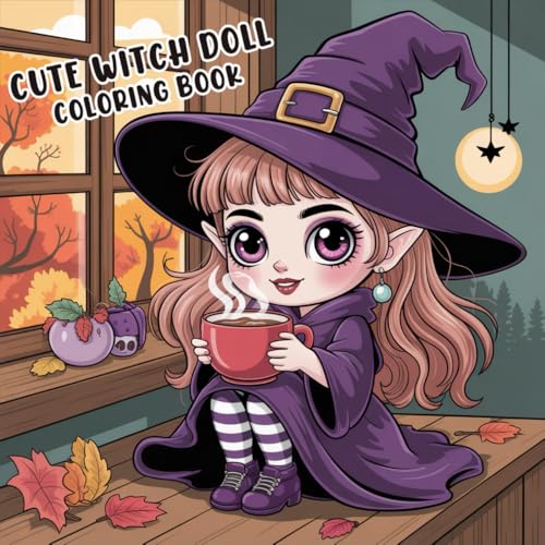 Cute Witch Doll Coloring Book for Kids Ages 3-8: Spooky Cute Witches with Easy Bold Outlines: Adorable Halloween Witch Coloring Pages for Girls, Boys, Toddlers and Preschool Kids