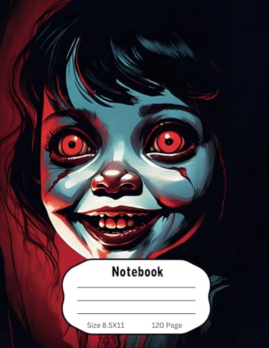 Horror-Themed Notebook: Scary doll pattern size 8.5x11 120 pages linese paperback