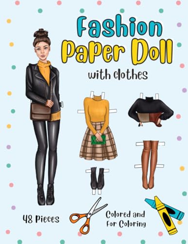 Fashion Paper Doll with Clothes - 48 Pieces, Colored and for Coloring for Girl ages 8-12: Dress-Up Paper Dolls Activity Book – Cut, Color, and Create Stylish Outfits!