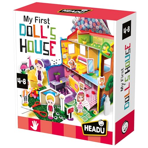 HEADU – My First Doll's House – skapa och dekorera dockhuset | Kreativt set för att bygga ditt dockhus, pedagogisk lek för barn 4–8 år, gåva till jul påsk, tillverkad i Italien
