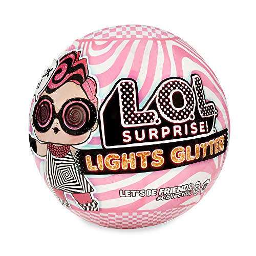 L.O.L. Överraskning! - Ljus glitterboll 8 av 1 docka med paljetter, 8 cm, fosforescerande, svart lampa, slumpmässiga modeller, för samlande inklusive batterier, leksaker för barn från 3 år LLUB4