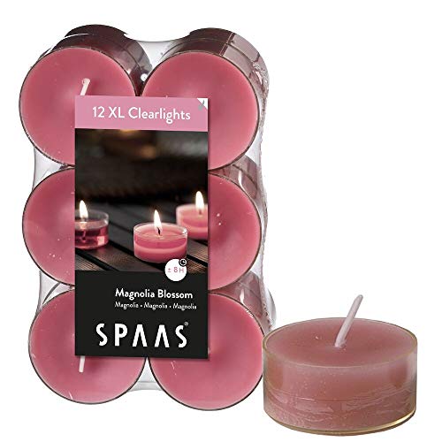 Spaas 12 Maxi Scented Tealights in Transparent Clear Cup, 8 Hours, Magnolia Blossom