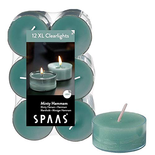 Spaas 12 Maxi Scented Tealights in Transparent Clear Cup, 8 Hours, Minty Hamman