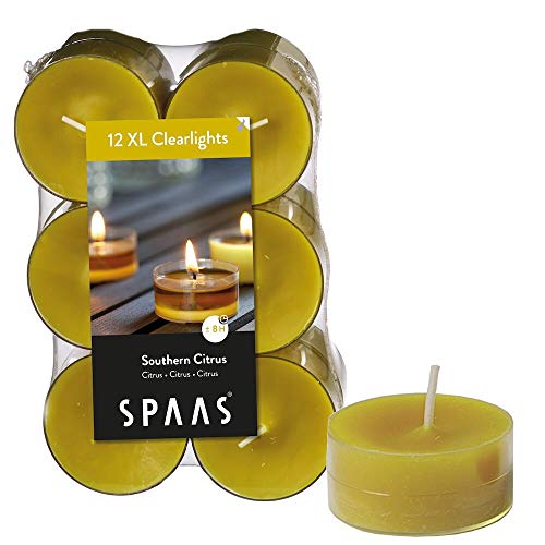 Spaas 12 Maxi Scented Tealights in Transparent Clear Cup, ± 8 Hours, Southern Citrus