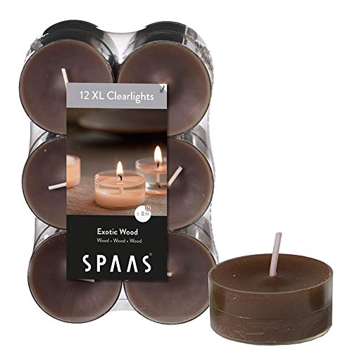 Spaas 12 Maxi Scented Tealights in Transparent Clear Cup, 8 Hours, Exotic Wood, 0392155.479