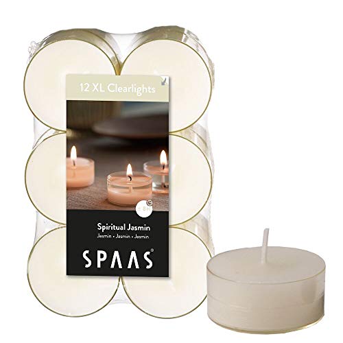 Spaas 12 Maxi Scented Tealights in Transparent Clear Cup, 8 Hours, Spiritual Jasmine