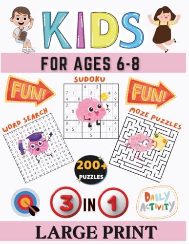 3-in-1 Activity Book for Kids Ages 6–8: 200+ Puzzles Including Mazes, Word Searches, and Sudoku Pages for Kids Ages 6 to 8 | Hours of Fun and Learning