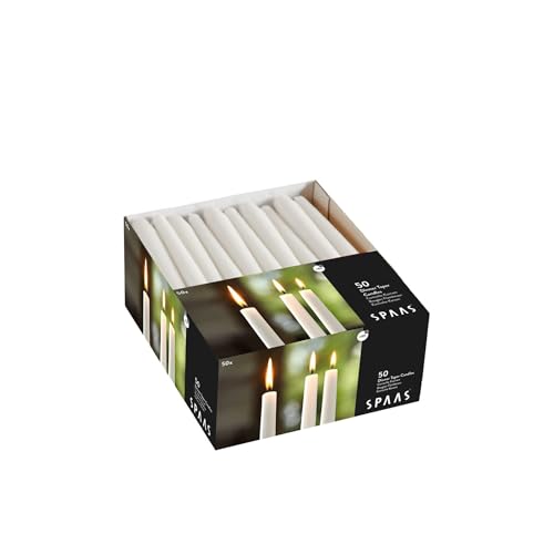 Spaas 14 Tapered Dinner Candles 21/220 mm, 8 Hours, Unscented, White